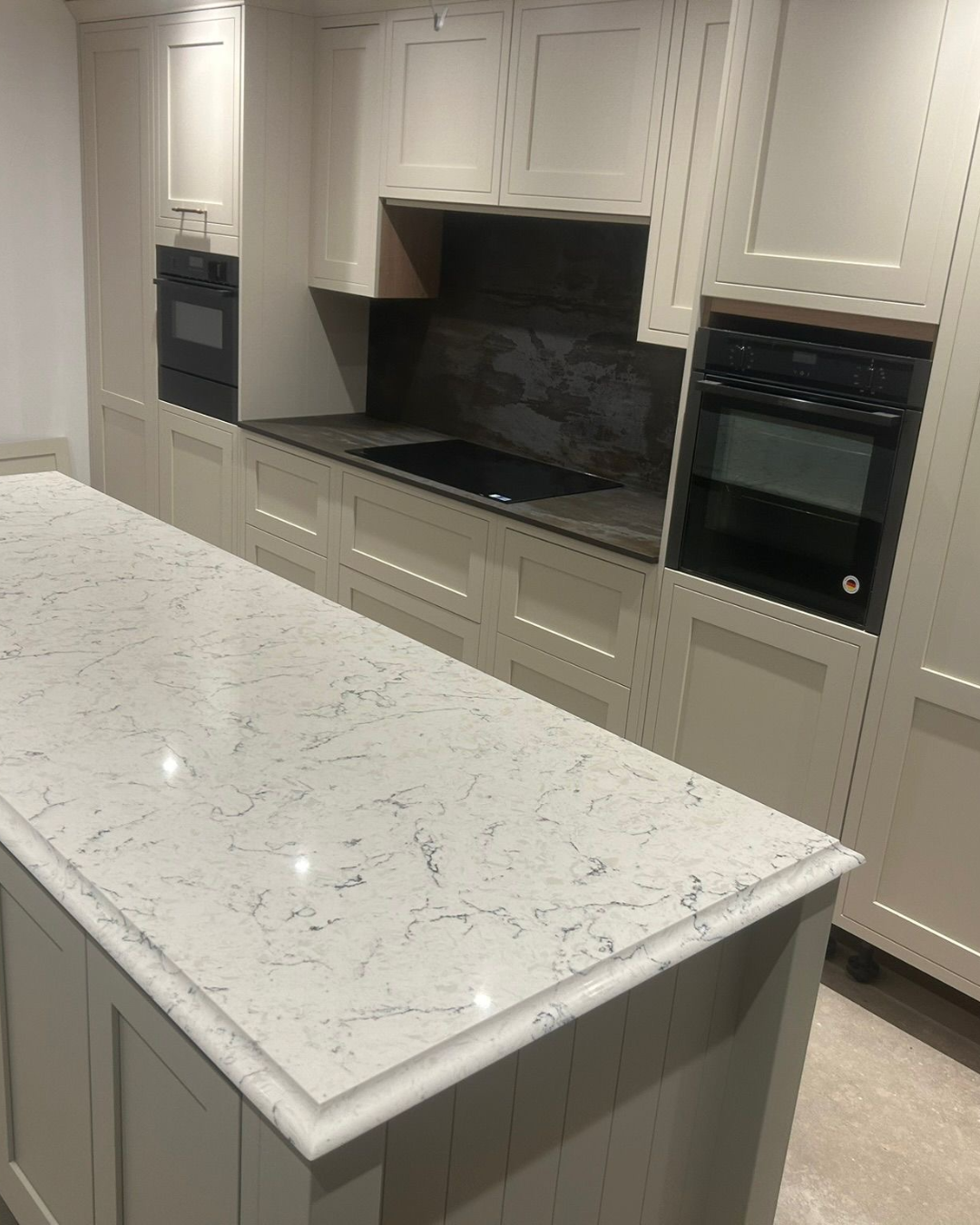 BQS Siberia, a stunning quartz that mixes together neutral tones of creams and browns to create a beautiful pattern!