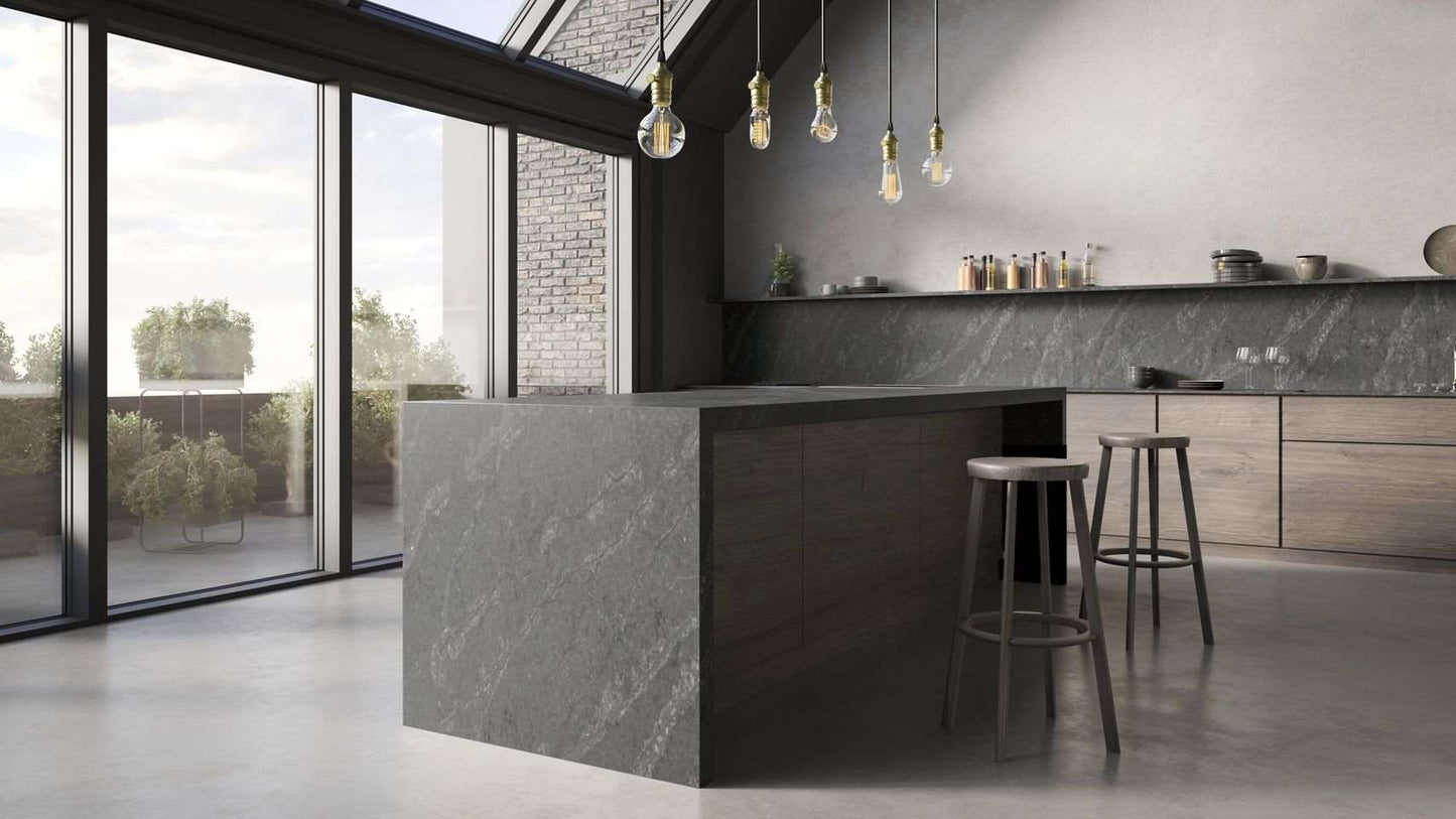 Cristallo Gris is a beautiful, marble-inspired surface, characterised by a sultry grey base, combined with a stone-effect patterning and subtle copper-like effects that capture the light. Modern yet with a timeless appeal, the rustic look patterning pairs excellently with metallic finishes and organic elements in the contemporary home.