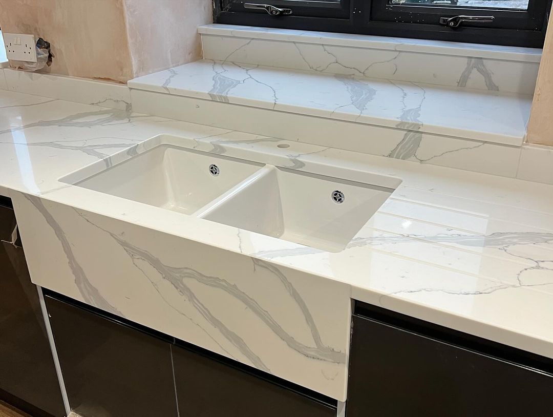 This stone embraces the dashing elegance of calacatta marble on a crisp white backdrop. With its striking mixture of thin and broad veining in beautiful grey tones, Calacatta Royal takes centre-stage in any scheme, creating a sense of grandeur and timelessness.