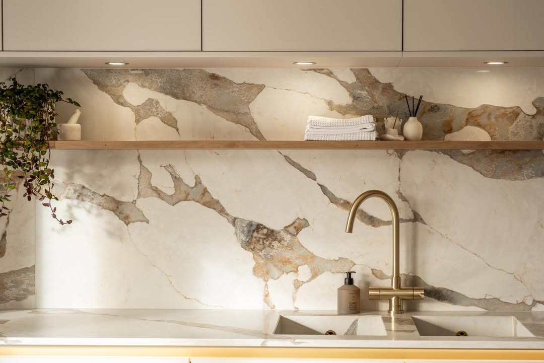 Featuring soft, flowing patterns in warm earth tones, Sahara Waves offers a stunning blend of beige, grey, and gold veining against an off-white background. The sweeping design evokes the natural beauty of desert sands, creating a serene luxurious feel. Ideal for both traditional and contemporary interiors, it adds an elegant touch to any kitchen or bathroom.